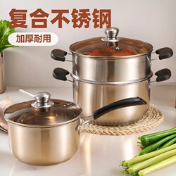 万輝ステンレス鍋家庭用厨房双耳厚複合鋼多機能電磁炉煮麺鍋ミルク鍋