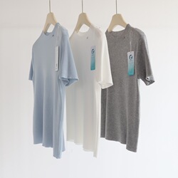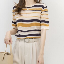 夏の新型ライゼル天糸半高襟金属アクセサリー半袖ニット女性通勤シンプルインナー上着