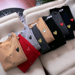 高バージョン100% 純ウール愛カーディガン丸首久川ニット玲保セーターコート女性刺繍愛