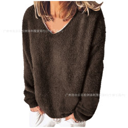 欧米越境貿易婦人服秋冬ベルベットセーターVネック長袖ゆったり毛皮風スウェットカジュアル多用途おしゃれレジャー