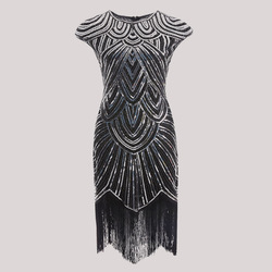 2023年重工の新型演出名媛気質セクシードレススカート流蘇両面スパンコールビーズワンピース女