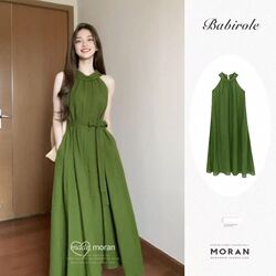 フランス独特のユニークな肩の緑の首のワンピース女性の夏の超美しい高級感の気質のストラップの長いスカート