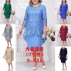 2024欧米の新型ワンピースの大きいサイズの婦人服のタキシードのレースの刺繍の2つのセットの気質の通勤の身のスカート