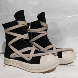 欧米の24ssの新型の高組の五芒星の刺繍のズックの板の靴のショートブーツのファスナーの白い布の靴のカップルのタイプの男性の靴