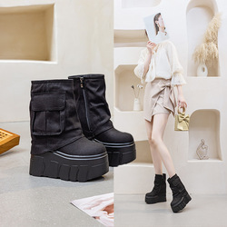 14cm超ハイヒールのズックショートブーツ女性2025春夏秋の新型工装靴の中で女性靴のカジュアルなサイドポケットが高くなりました。