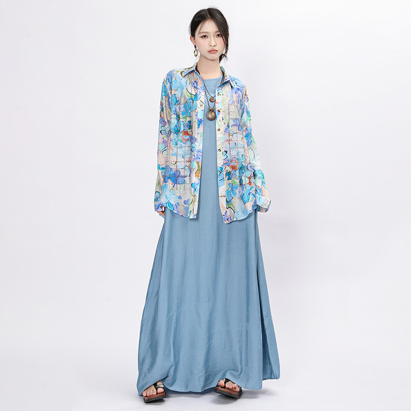 Feiyuan ベストドレス + プリントダイヤモンドシャツツーピースセット大きいサイズの女性のカジュアルルーズ通気性スーツ女性