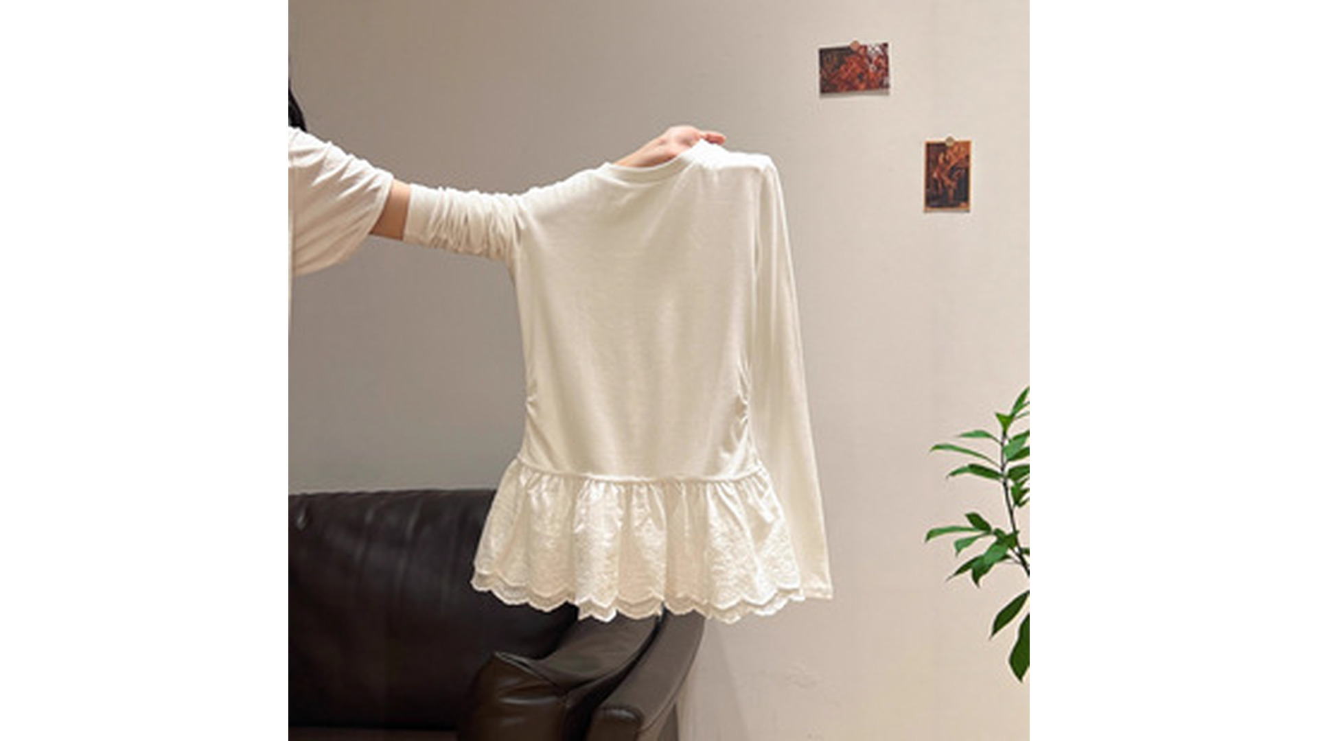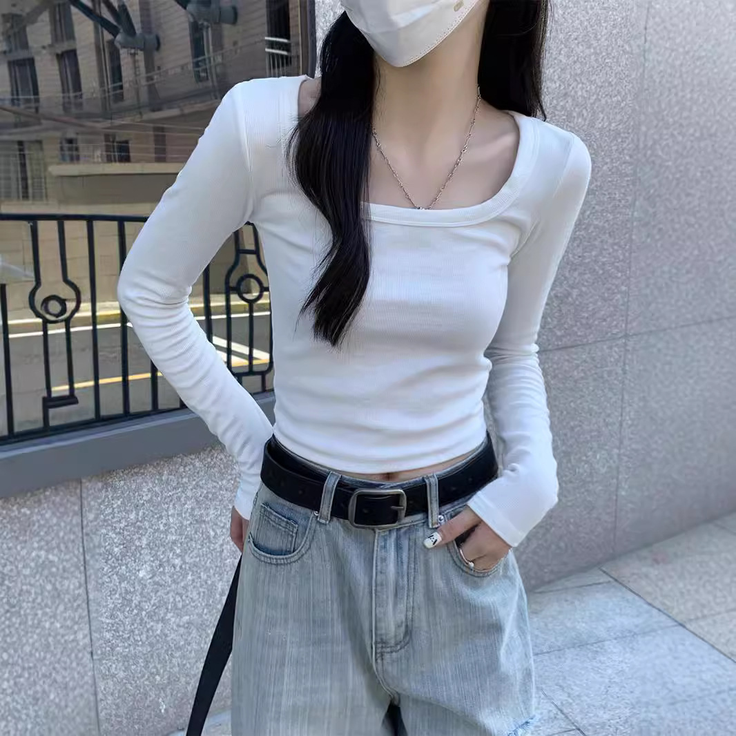 白い襟のtシャツの女性の秋の韓国版2024の新型の修身はやせている短いタイプの基礎の中で長袖の底のシャツを掛けます。
