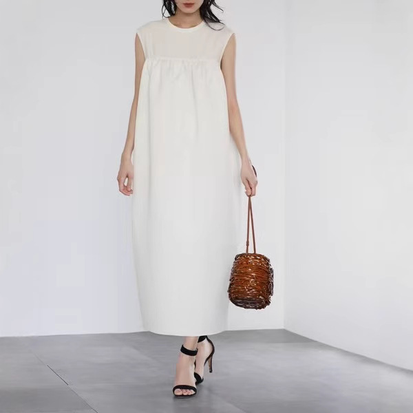 2025年新作 日本風 ノースリーブ 白黒 綿入り ロング丈 ガウンワンピース 既製品